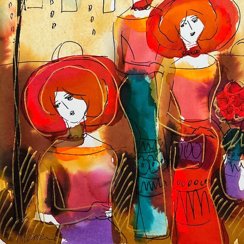 This is an original mixed media watercolor painting on paper by Moshe Leider. Hand signed by the artist, this piece comes custom framed and includes a Letter of Authenticity. Measures approximately 16" x 15" (frame), 9" x 8" (image).