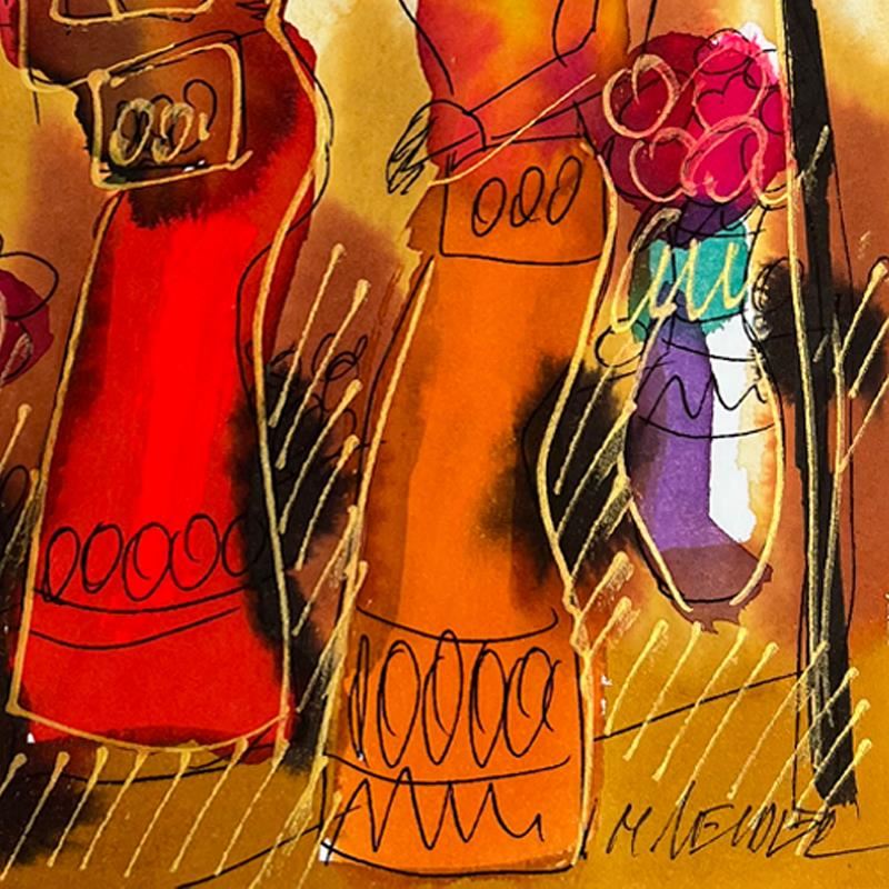 This is an original mixed media watercolor painting on paper by Moshe Leider. Hand signed by the artist, this piece comes custom framed and includes a Letter of Authenticity. Measures approximately 15" x 13.5" (frame), 8" x 6.5" (image).