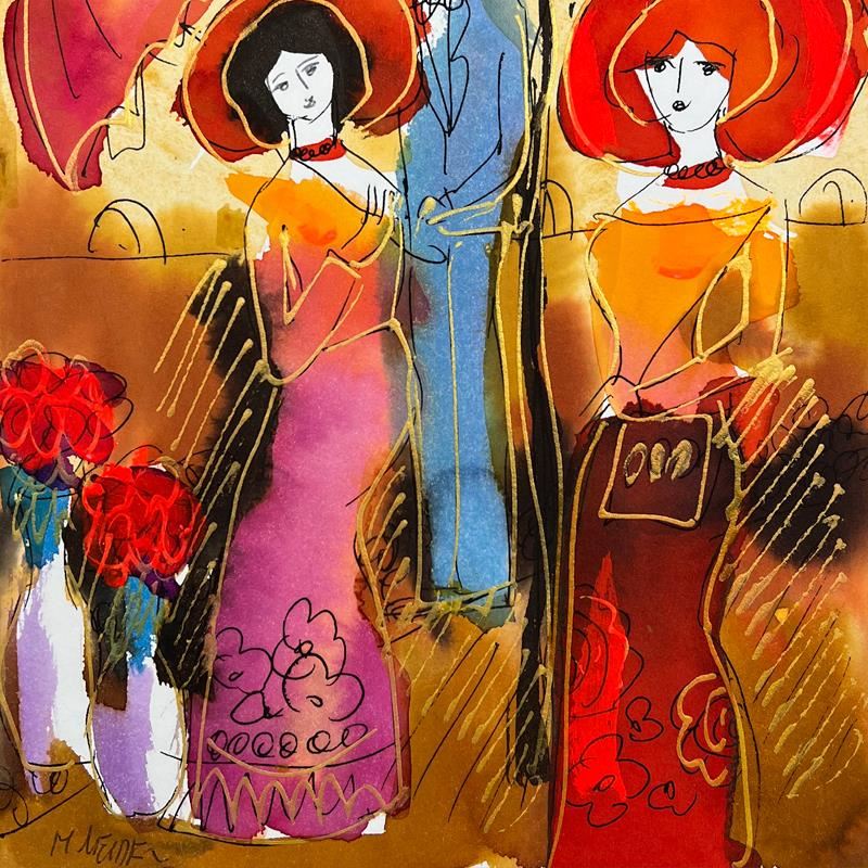 This is an original mixed media watercolor painting on paper by Moshe Leider. Hand signed by the artist, this piece comes custom framed and includes a Letter of Authenticity. Measures approximately 16" x 15" (frame), 9" x 8" (image).
