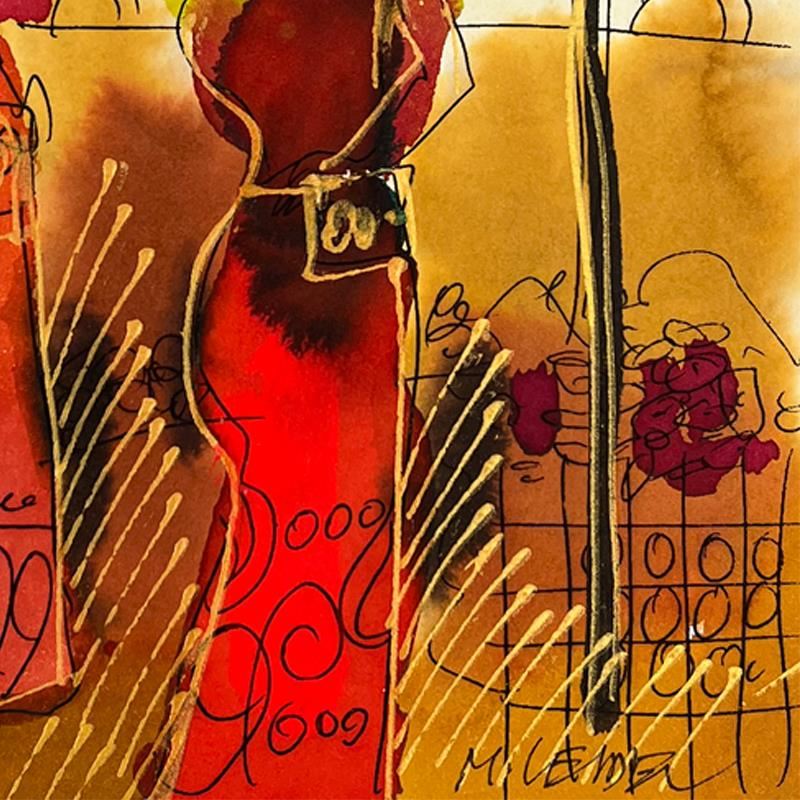 This is an original mixed media watercolor painting on paper by Moshe Leider. Hand signed by the artist, this piece comes custom framed and includes a Letter of Authenticity. Measures approximately 15" x 13.5" (frame), 8" x 6.5" (image).