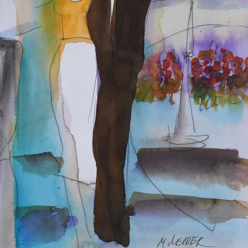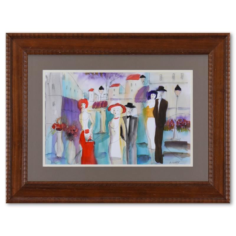 This is an original mixed media watercolor painting on paper by Moshe Leider, hand signed by the artist. This piece comes custom framed. Includes Letter of Authenticity. Measures approx. 29.5" x 22.5" (frame), 19" x 12" (image).