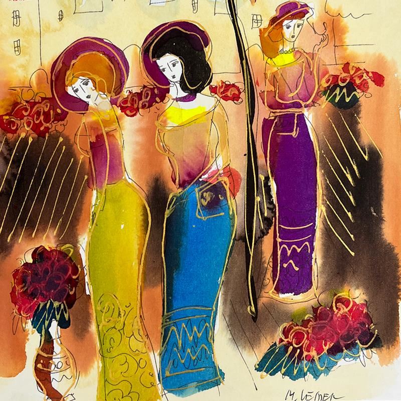 This is an original mixed media watercolor painting on paper by Moshe Leider. Hand signed by the artist, this piece comes custom framed and includes a Letter of Authenticity. Measures approximately 17" x 15" (frame), 10" x 8" (image).
