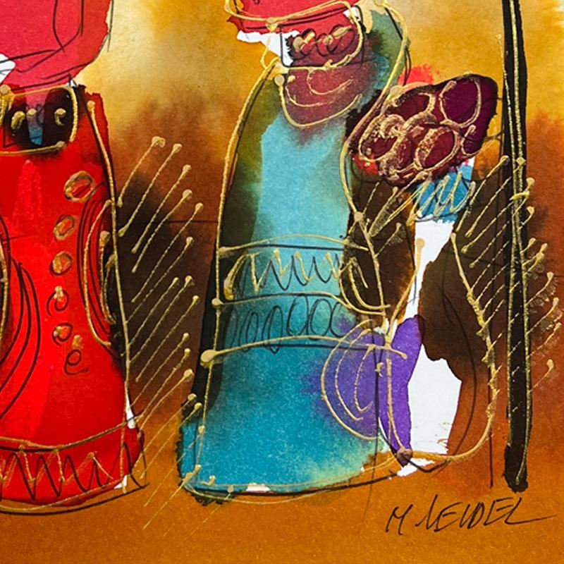This is an original mixed media watercolor painting on paper by Moshe Leider. Hand signed by the artist, this piece comes custom framed and includes a Letter of Authenticity. Measures approximately 15" x 13.5" (frame), 8" x 6.5" (image).