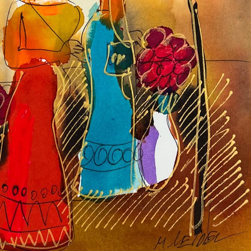 This is an original mixed media watercolor painting on paper by Moshe Leider. Hand signed by the artist, this piece comes custom framed and includes a Letter of Authenticity. Measures approximately 15" x 13.5" (frame), 8" x 6.5" (image).