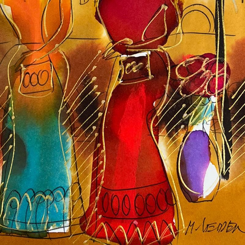 This is an original mixed media watercolor painting on paper by Moshe Leider. Hand signed by the artist, this piece comes custom framed and includes a Letter of Authenticity. Measures approximately 15" x 13.5" (frame), 8" x 6.5" (image).