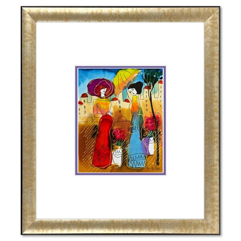 This is an original mixed media watercolor painting on paper by Moshe Leider. Hand signed by the artist, this piece comes custom framed and includes a Letter of Authenticity. Measures approximately 15" x 13.5" (frame), 8" x 6.5" (image).