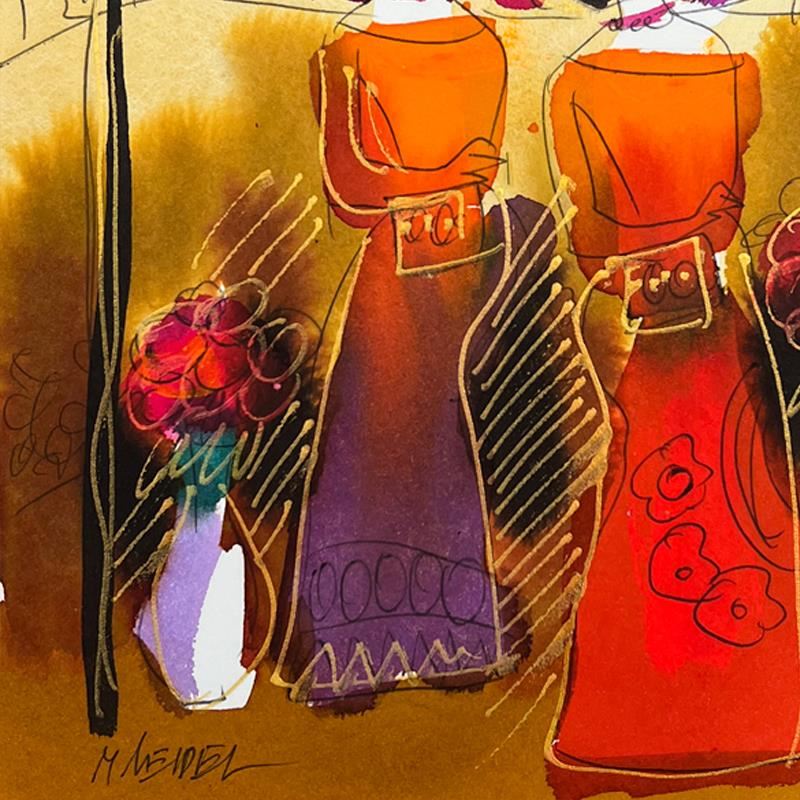 This is an original mixed media watercolor painting on paper by Moshe Leider. Hand signed by the artist, this piece comes custom framed and includes a Letter of Authenticity. Measures approximately 15" x 13.5" (frame), 8" x 6.5" (image).