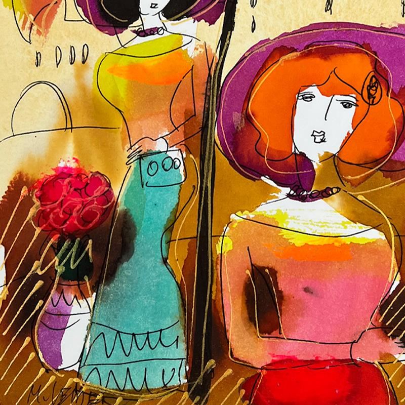 This is an original mixed media watercolor painting on paper by Moshe Leider. Hand signed by the artist, this piece comes custom framed and includes a Letter of Authenticity. Measures approximately 15" x 13.5" (frame), 8" x 6.5" (image).