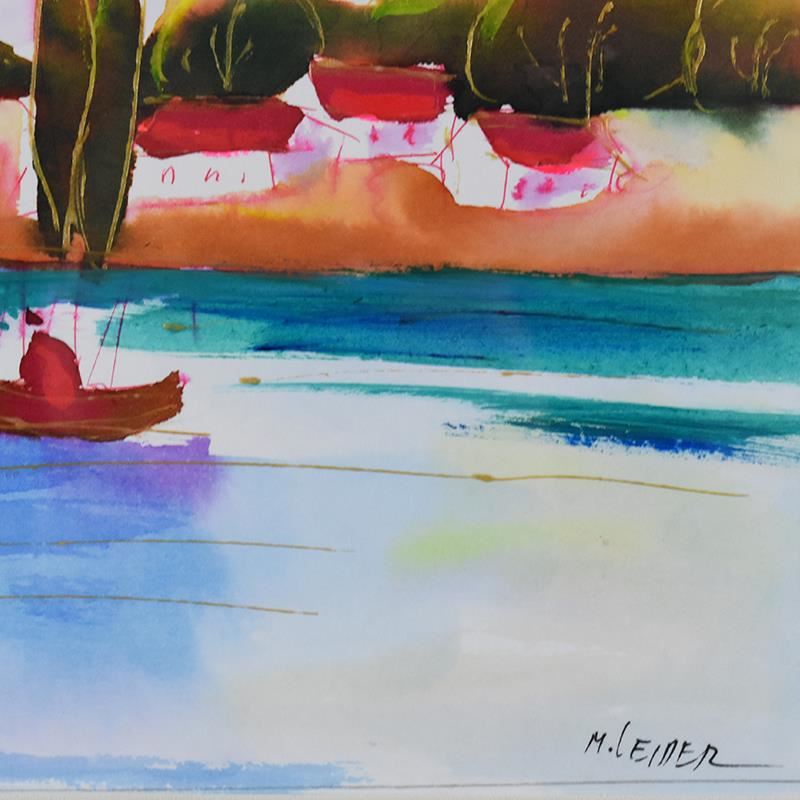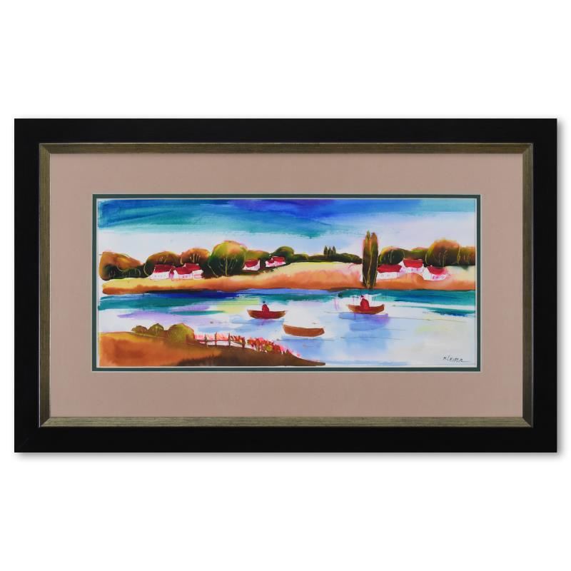 This is an original mixed media watercolor painting on paper by Moshe Leider, hand signed by the artist. This piece comes custom framed. Includes Letter of Authenticity. Measures approx. 27" x 16.5" (frame), 19" x 8.5" (image).