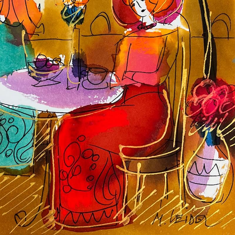 This is an original mixed media watercolor painting on paper by Moshe Leider. Hand signed by the artist, this piece comes custom framed and includes a Letter of Authenticity. Measures approximately 15" x 13.5" (frame), 8" x 6.5" (image).