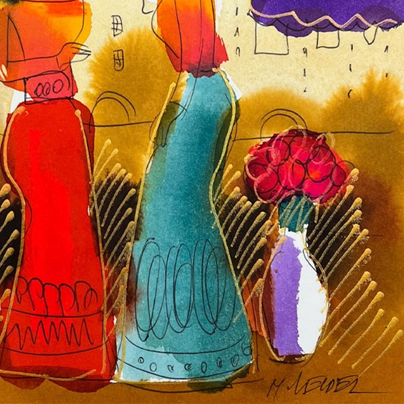 This is an original mixed media watercolor painting on paper by Moshe Leider. Hand signed by the artist, this piece comes custom framed and includes a Letter of Authenticity. Measures approximately 15" x 13.5" (frame), 8" x 6.5" (image).