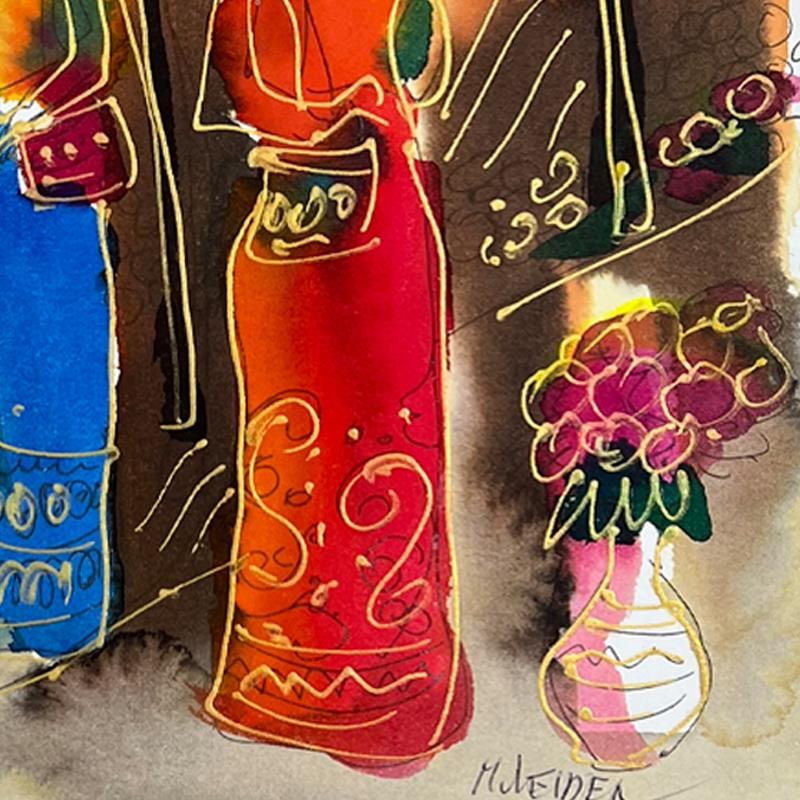 This is an original mixed media watercolor painting on paper by Moshe Leider. Hand signed by the artist, this piece comes custom framed and includes a Letter of Authenticity. Measures approximately 18.5" x 16" (frame), 12" x 8.5" (image).