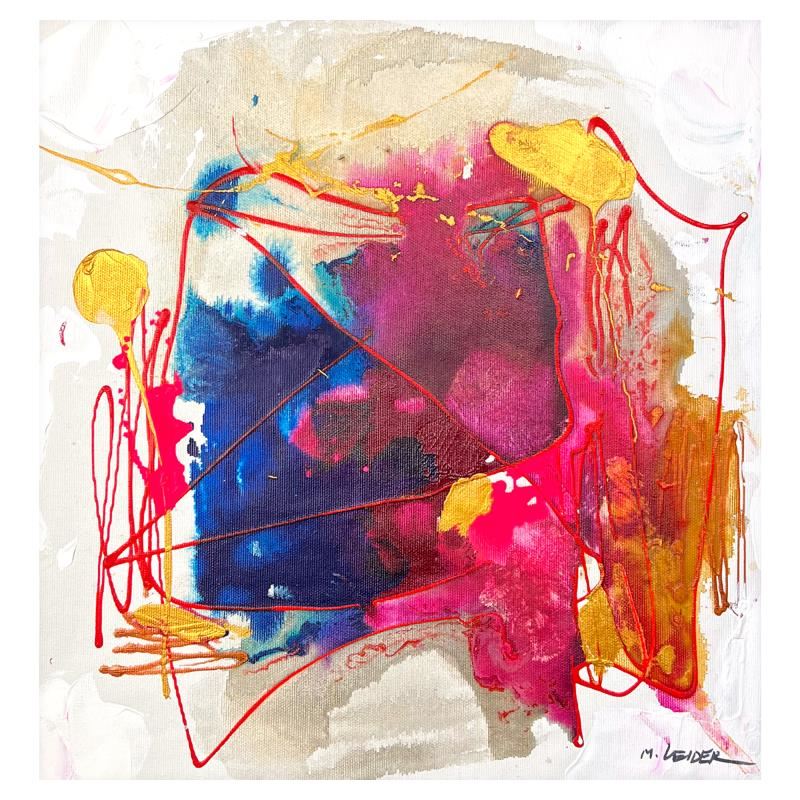 This is an original painting, acrylic on canvas by Moshe Leider. The piece is hand signed by the artist and includes a letter of authenticity. Measures approximately 15.5 x 15.5 (image).