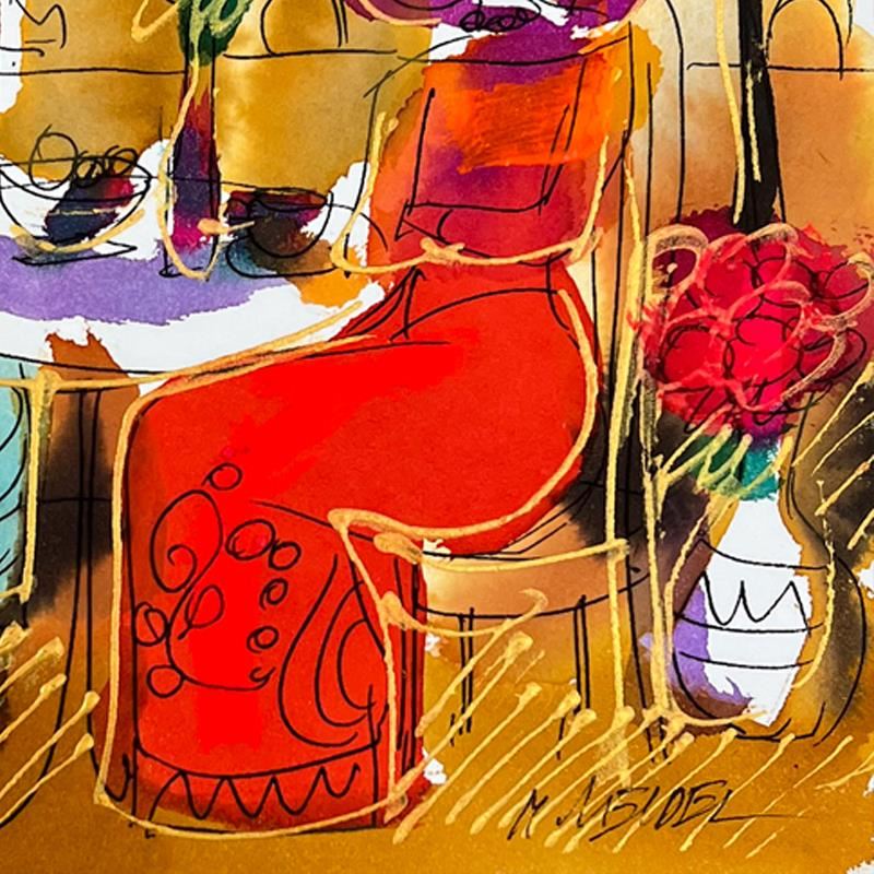 This is an original mixed media watercolor painting on paper by Moshe Leider. Hand signed by the artist, this piece comes custom framed and includes a Letter of Authenticity. Measures approximately 15 x 13.5 (frame), 8 x 6.5 (image).