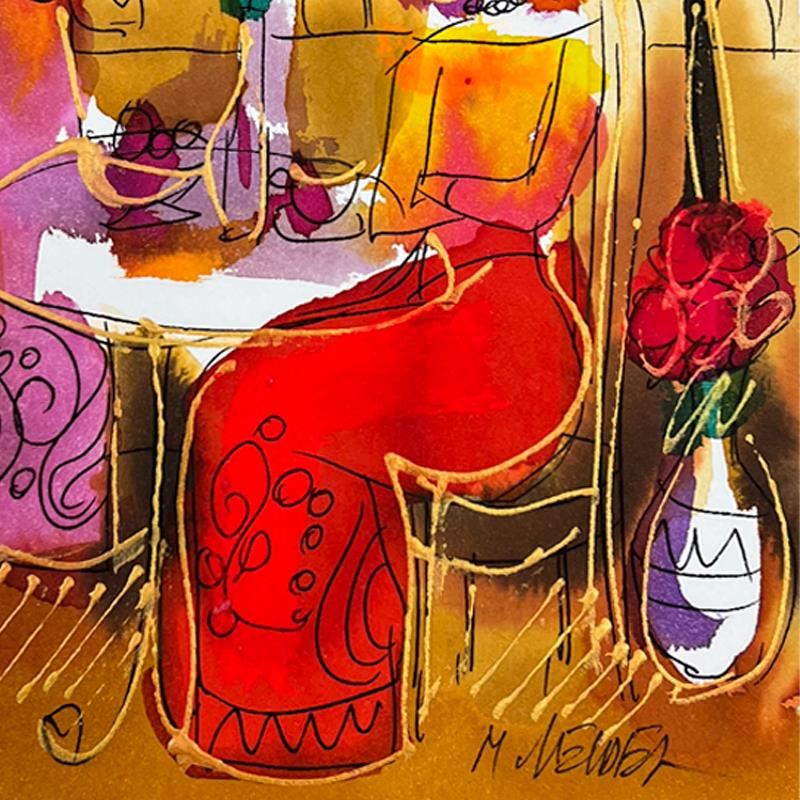 This is an original mixed media watercolor painting on paper by Moshe Leider. Hand signed by the artist, this piece comes custom framed and includes a Letter of Authenticity. Measures approximately 15" x 13.5" (frame), 8" x 6.5" (image).