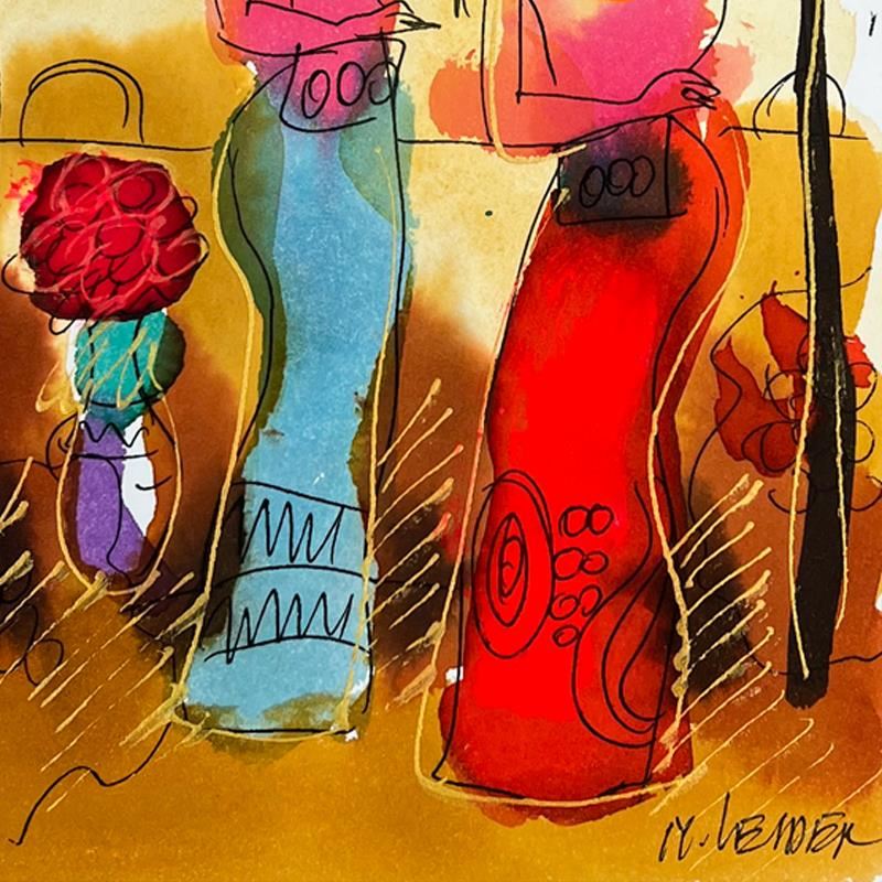 This is an original mixed media watercolor painting on paper by Moshe Leider. Hand signed by the artist, this piece comes custom framed and includes a Letter of Authenticity. Measures approximately 15" x 13.5" (frame), 8" x 6.5" (image).