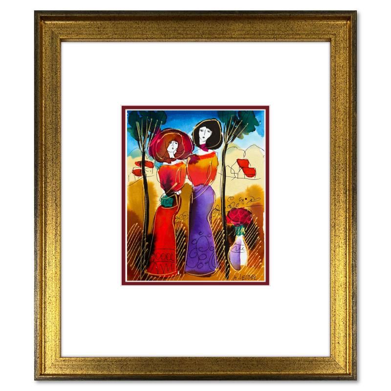 This is an original mixed media watercolor painting on paper by Moshe Leider. Hand signed by the artist, this piece comes custom framed and includes a Letter of Authenticity. Measures approximately 15" x 13.5" (frame), 8" x 6.5" (image).