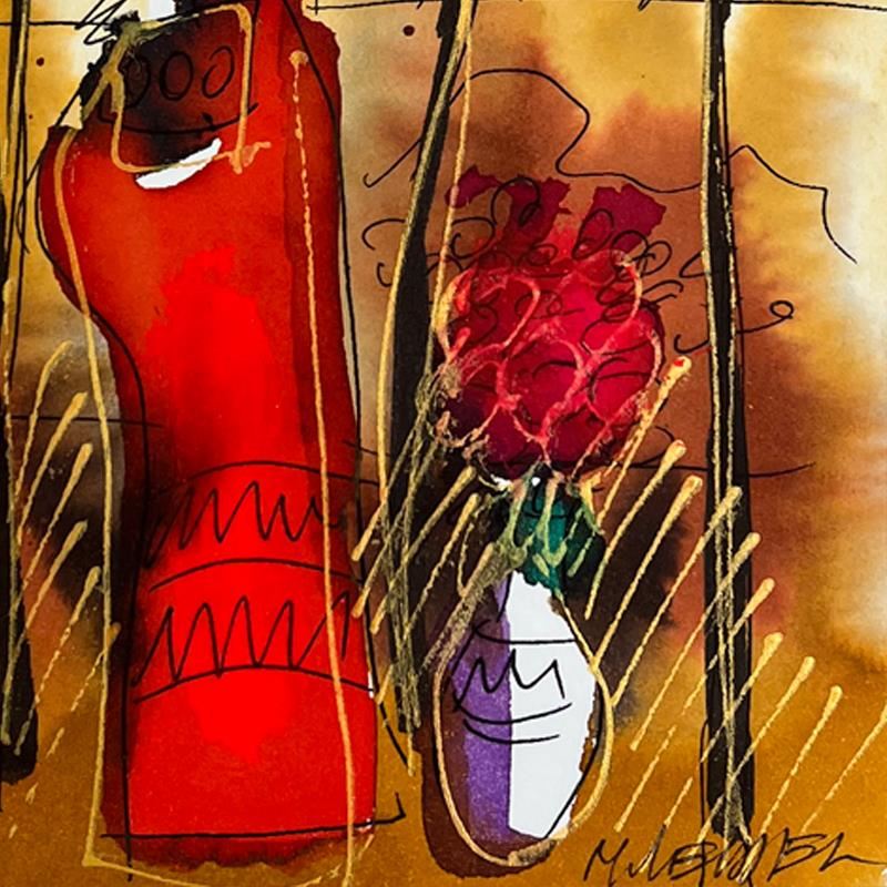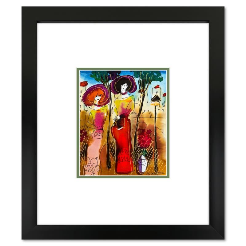 This is an original mixed media watercolor painting on paper by Moshe Leider. Hand signed by the artist, this piece comes custom framed and includes a Letter of Authenticity. Measures approximately 15" x 13.5" (frame), 8" x 6.5" (image).