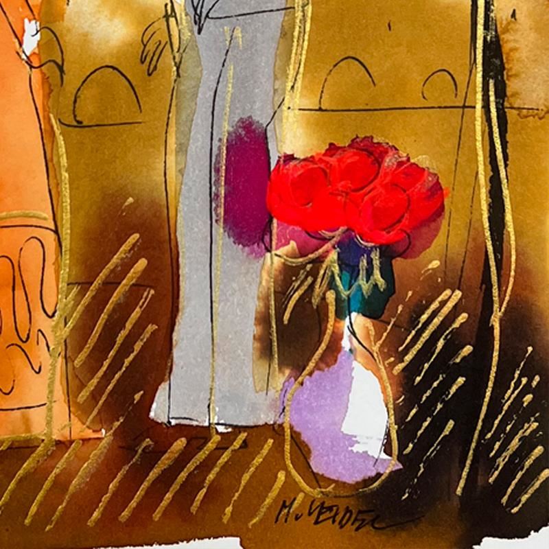 This is an original mixed media watercolor painting on paper by Moshe Leider. Hand signed by the artist, this piece comes custom framed and includes a Letter of Authenticity. Measures approximately 15" x 13.5" (frame), 8" x 6.5" (image).