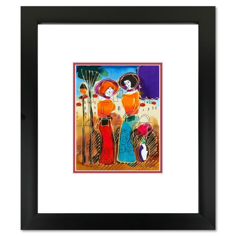 This is an original mixed media watercolor painting on paper by Moshe Leider. Hand signed by the artist, this piece comes custom framed and includes a Letter of Authenticity. Measures approximately 15" x 13.5" (frame), 8" x 6.5" (image).