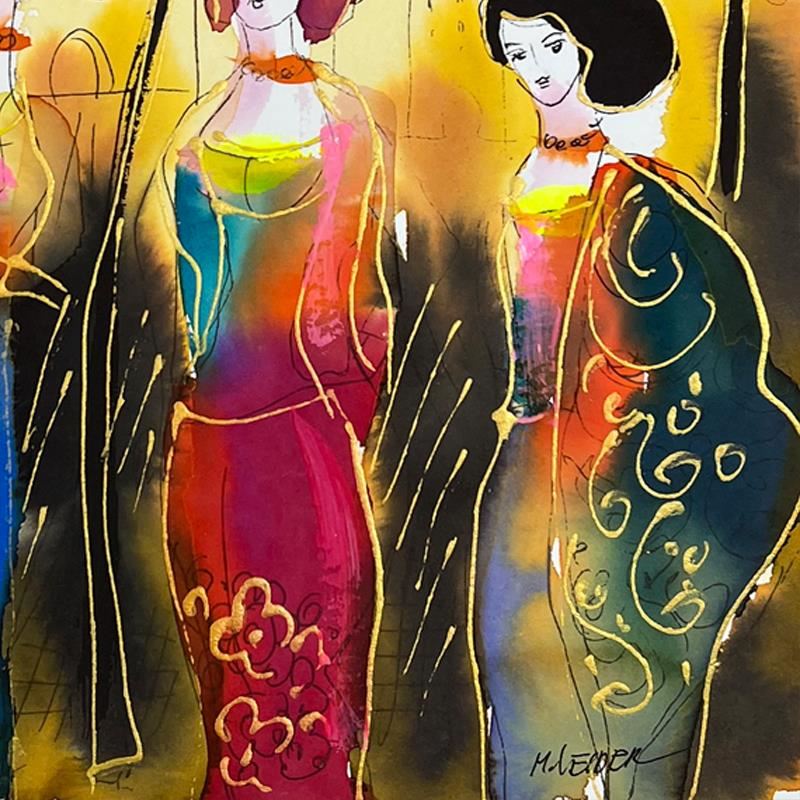 This is an original mixed media watercolor painting on paper by Moshe Leider. Hand signed by the artist, this piece comes custom framed and includes a Letter of Authenticity. Measures approximately 18.5" x 16" (frame), 11" x 8.5" (image).