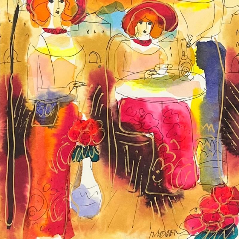 This is an original mixed media watercolor painting on paper by Moshe Leider, hand signed by the artist. This piece comes custom framed and includes a Letter of Authenticity. Measures approximately 16" x 14" (frame), 8.5" x 6.5" (image).