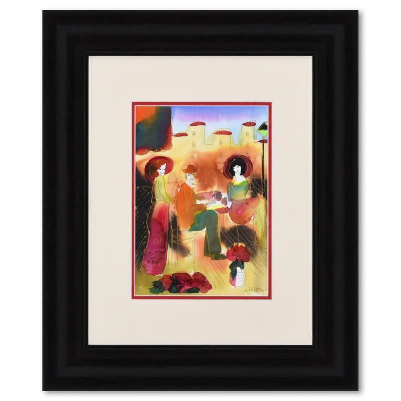 This is an original mixed media watercolor painting on paper by Moshe Leider, hand signed by the artist. This piece comes custom framed. Includes Letter of Authenticity. Measures approx. 19" x 23" (frame), 8" x 11.5" (image).