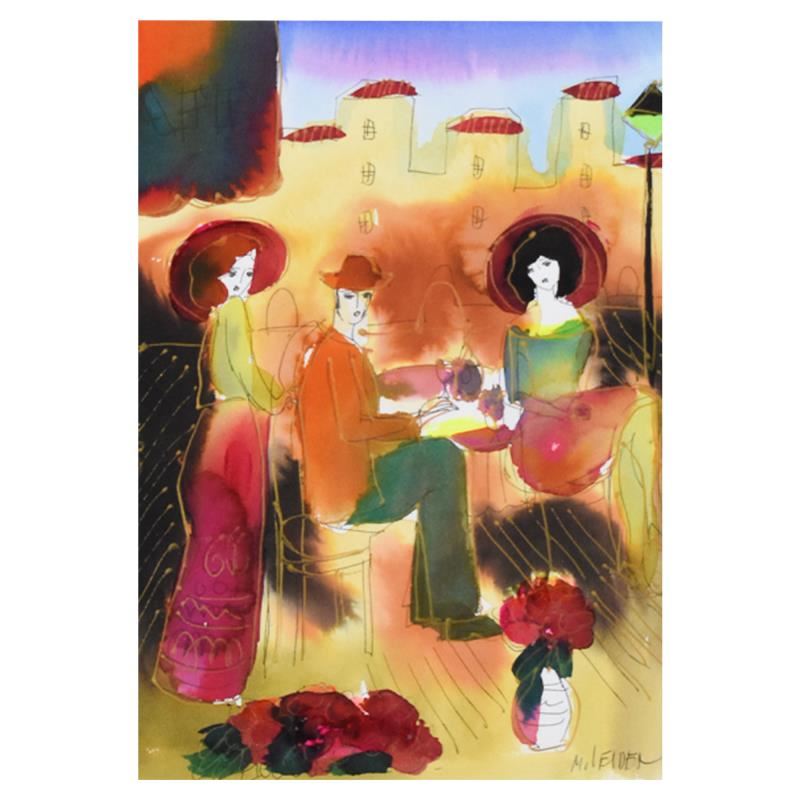 This is an original mixed media watercolor painting on paper by Moshe Leider, hand signed by the artist. This piece comes custom framed. Includes Letter of Authenticity. Measures approx. 19" x 23" (frame), 8" x 11.5" (image).