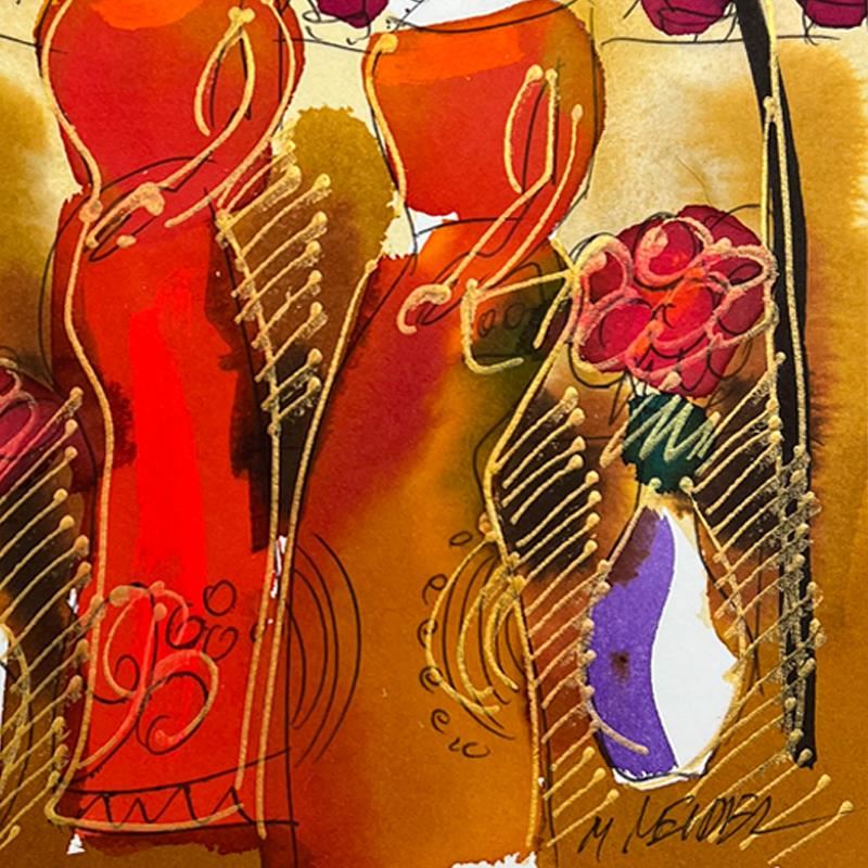 This is an original mixed media watercolor painting on paper by Moshe Leider. Hand signed by the artist, this piece comes custom framed and includes a Letter of Authenticity. Measures approximately 15" x 13.5" (frame), 8" x 6.5" (image).