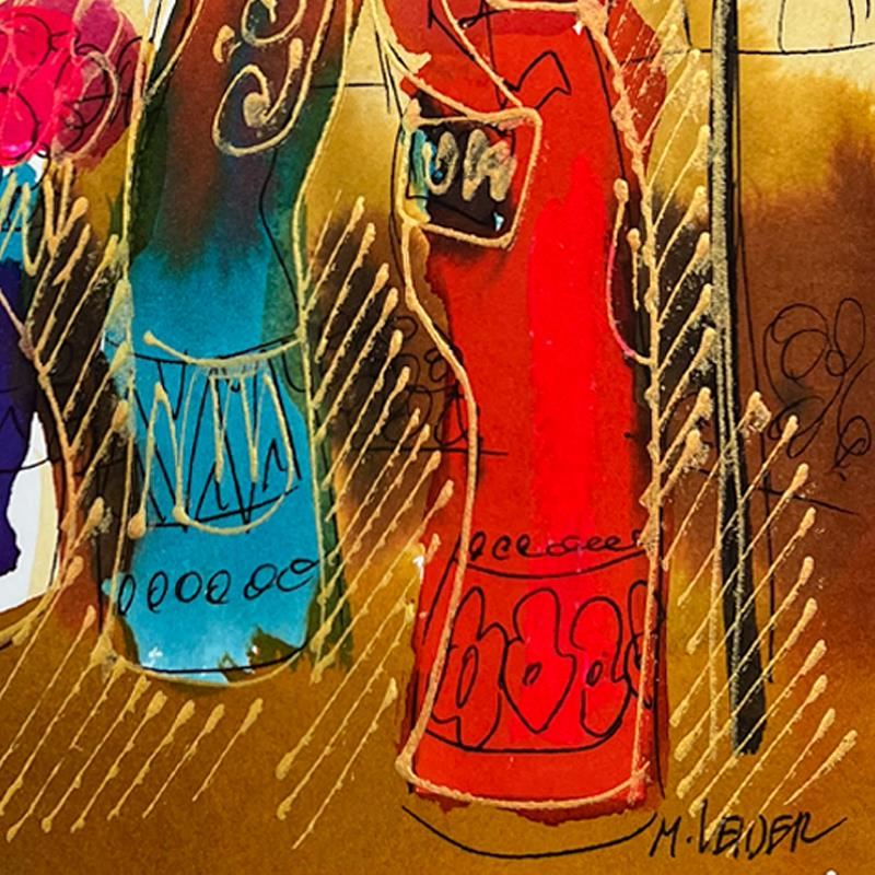 This is an original mixed media watercolor painting on paper by Moshe Leider. Hand signed by the artist, this piece comes custom framed and includes a Letter of Authenticity. Measures approximately 15" x 13.5" (frame), 8" x 6.5" (image).