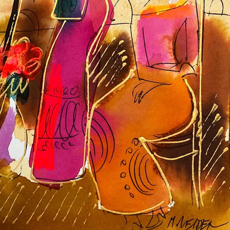 This is an original mixed media watercolor painting on paper by Moshe Leider. Hand signed by the artist, this piece comes custom framed and includes a Letter of Authenticity. Measures approximately 15" x 13.5" (frame), 8" x 6.5" (image).