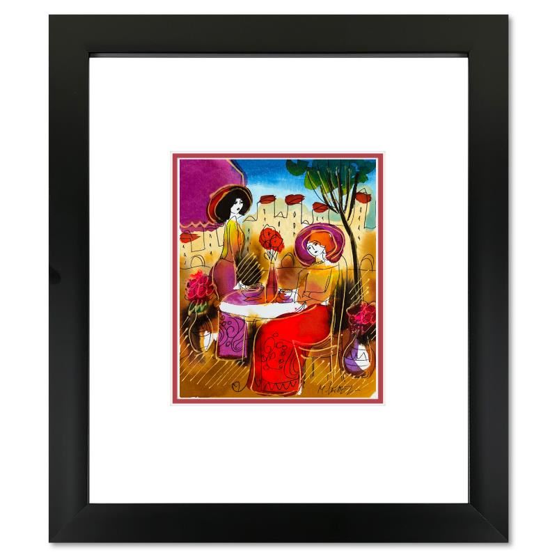 This is an original mixed media watercolor painting on paper by Moshe Leider. Hand signed by the artist, this piece comes custom framed and includes a Letter of Authenticity. Measures approximately 15" x 13.5" (frame), 8" x 6.5" (image).
