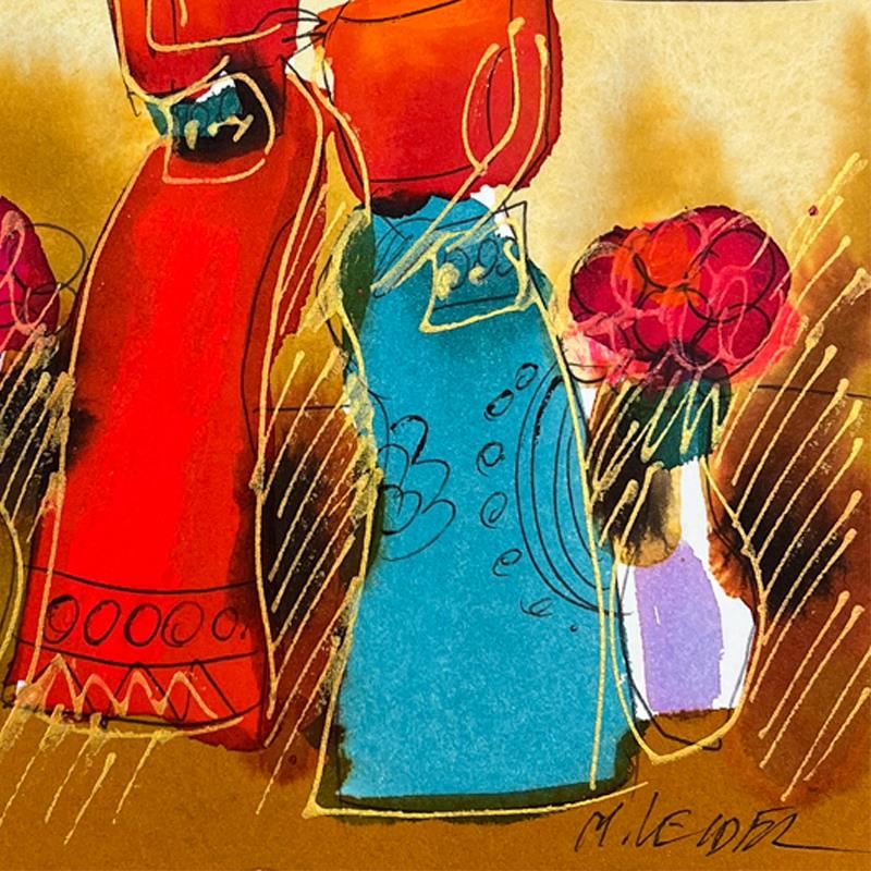 This is an original mixed media watercolor painting on paper by Moshe Leider. Hand signed by the artist, this piece comes custom framed and includes a Letter of Authenticity. Measures approximately 15" x 13.5" (frame), 8" x 6.5" (image).