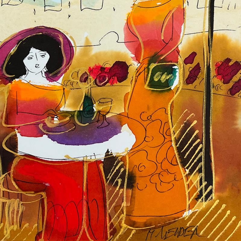 This is an original mixed media watercolor painting on paper by Moshe Leider. Hand signed by the artist, this piece comes custom framed and includes a Letter of Authenticity. Measures approximately 15" x 13.5" (frame), 8" x 6.5" (image). This item requires special handling and may have a longer than usual turnaround.