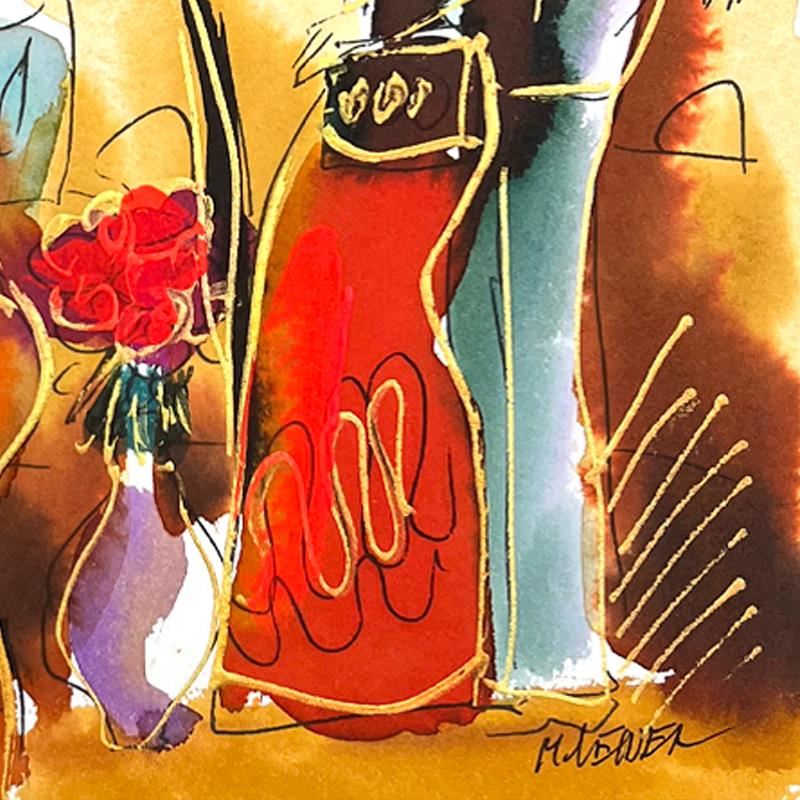 This is an original mixed media watercolor painting on paper by Moshe Leider. Hand signed by the artist, this piece comes custom framed and includes a Letter of Authenticity. Measures approximately 15" x 17" (frame), 8" x 10" (image). This item requires special handling and may have a longer than usual turnaround.