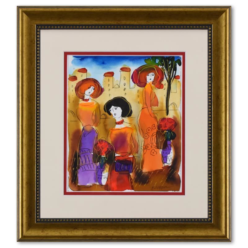 This is an original mixed media watercolor painting on paper by Moshe Leider, hand signed by the artist. This piece comes custom framed. Includes Letter of Authenticity. Measures approx. 14" x 16" (frame), 7.5" x 9" (image).