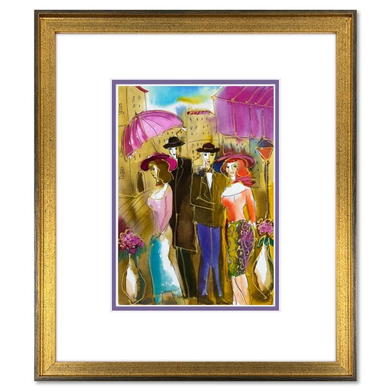 This is an original mixed media watercolor painting on paper by Moshe Leider. Hand signed by the artist, this piece comes custom framed and includes a Letter of Authenticity. Measures approximately 18.5" x 16" (frame), 12" x 8.5" (image). This item requires special handling and may have a longer than usual turnaround.