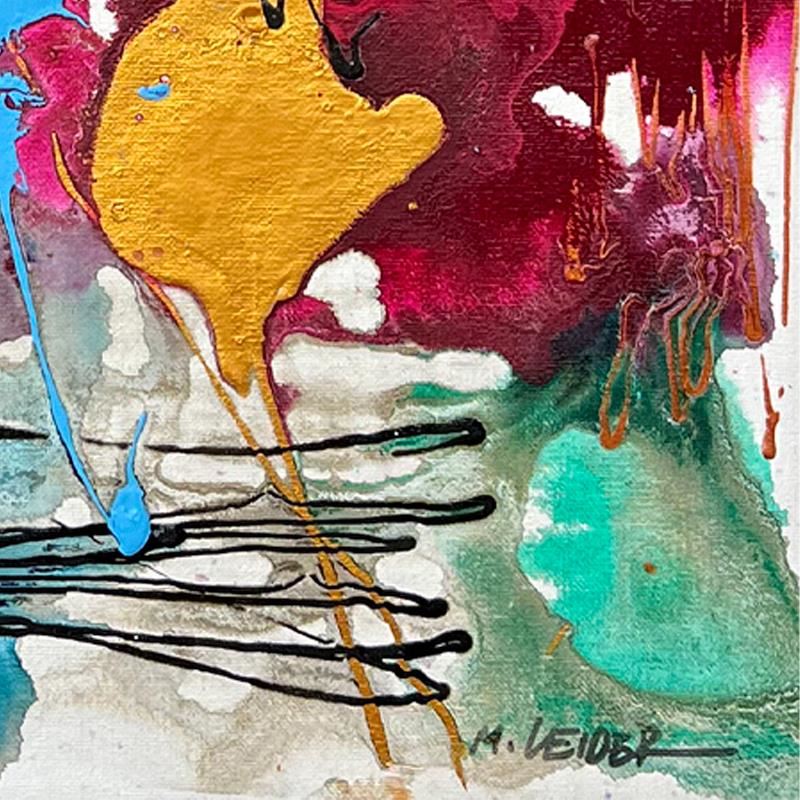 This is an original painting, acrylic on canvas by Moshe Leider. The piece is hand signed by the artist and includes a letter of authenticity. Measures approximately 15.5" x 15" (image).