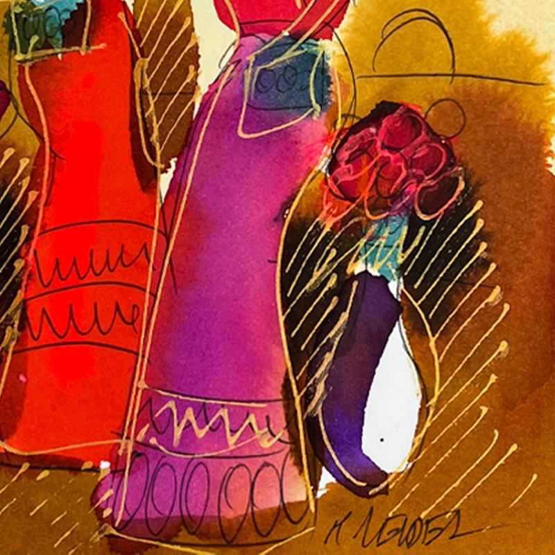 This is an original mixed media watercolor painting on paper by Moshe Leider. Hand signed by the artist, this piece comes custom framed and includes a Letter of Authenticity. Measures approximately 15" x 13.5" (frame), 8" x 6.5" (image). This item requires special handling and may have a longer than usual turnaround.