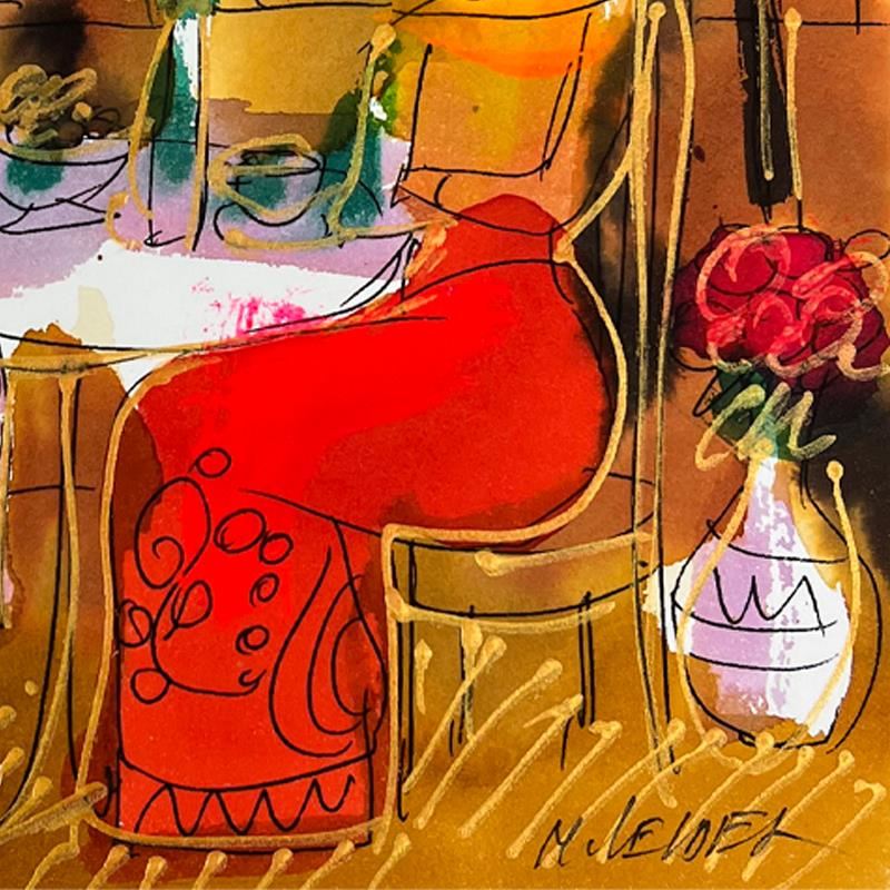 This is an original mixed media watercolor painting on paper by Moshe Leider. Hand signed by the artist, this piece comes custom framed and includes a Letter of Authenticity. Measures approximately 15" x 13.5" (frame), 8" x 6.5" (image). This item requires special handling and may have a longer than usual turnaround.