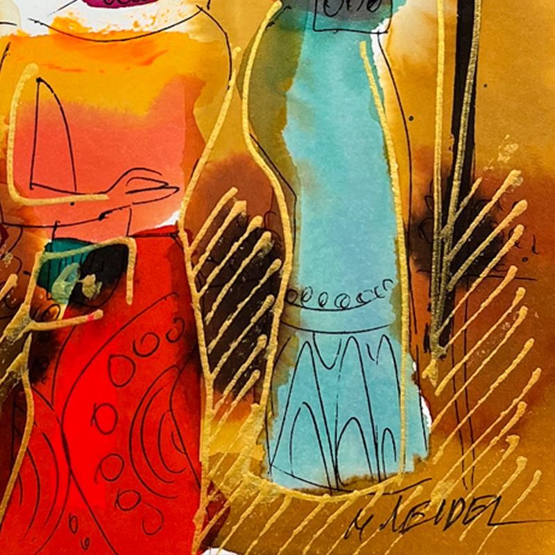 This is an original mixed media watercolor painting on paper by Moshe Leider. Hand signed by the artist, this piece comes custom framed and includes a Letter of Authenticity. Measures approximately 15" x 13.5" (frame), 8" x 6.5" (image). This item requires special handling and may have a longer than usual turnaround.