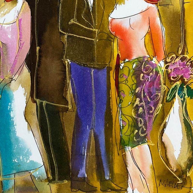 This is an original mixed media watercolor painting on paper by Moshe Leider. Hand signed by the artist, this piece comes custom framed and includes a Letter of Authenticity. Measures approximately 18.5" x 16" (frame), 12" x 8.5" (image). This item requires special handling and may have a longer than usual turnaround.