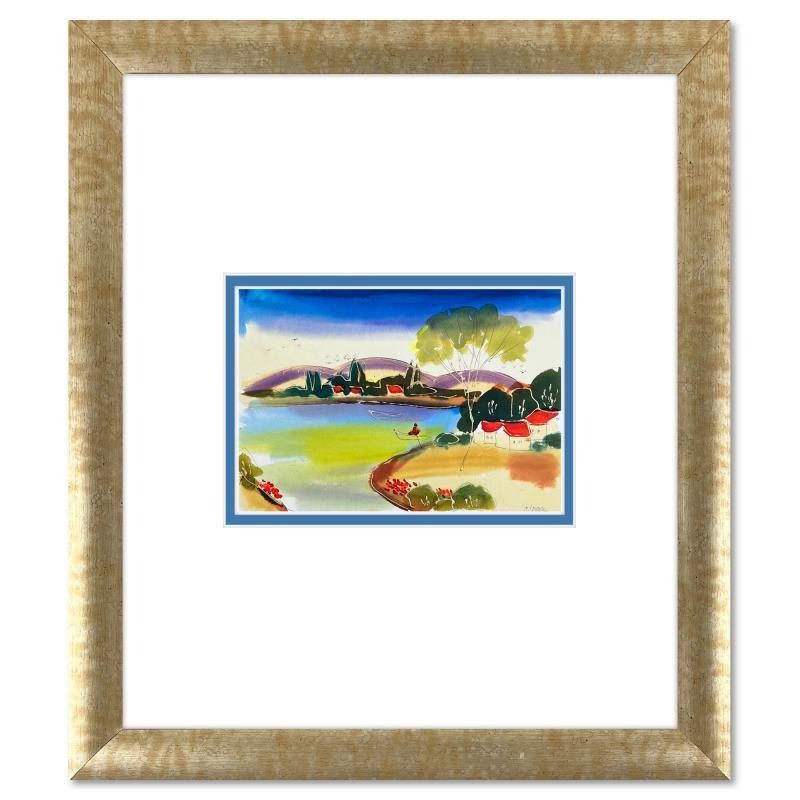 This is an original mixed media watercolor painting on paper by Moshe Leider. Hand signed by the artist, this piece comes custom framed and includes a Letter of Authenticity. Measures approximately 18.5" x 16" (frame), 9.5" x 13" (image). This item requires special handling and may have a longer than usual turnaround.