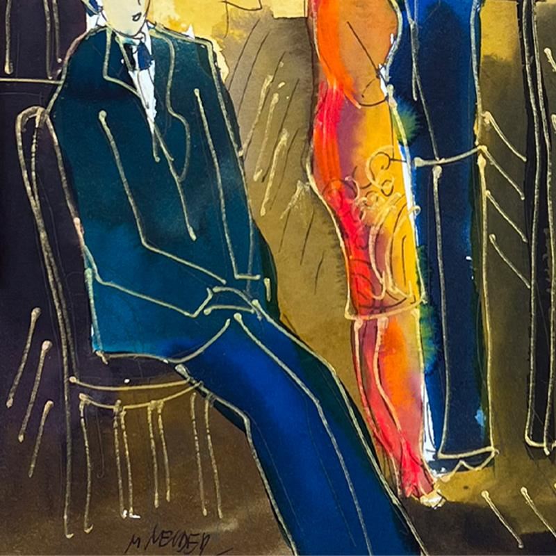This is an original mixed media watercolor painting on paper by Moshe Leider. Hand signed by the artist, this piece comes custom framed and includes a Letter of Authenticity. Measures approximately 18.5" x 16" (frame), 11.5" x 9" (image). This item requires special handling and may have a longer than usual turnaround.