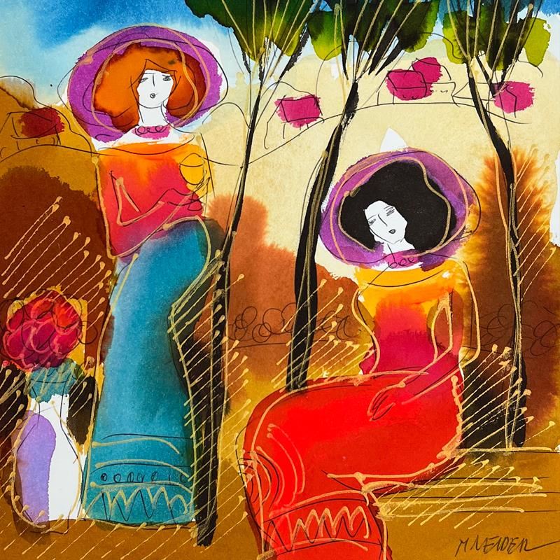 This is an original mixed media watercolor painting on paper by Moshe Leider. Hand signed by the artist, this piece comes custom framed and includes a Letter of Authenticity. Measures approximately 16" x 15" (frame), 9" x 8" (image). This item requires special handling and may have a longer than usual turnaround.