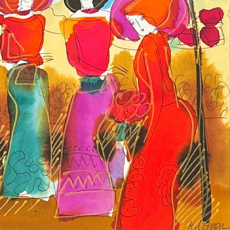 This is an original mixed media watercolor painting on paper by Moshe Leider, hand signed by the artist. This piece comes custom framed and includes a Letter of Authenticity. Measures approximately 15.5" x 14.5" (frame), 9" x 8" (image).