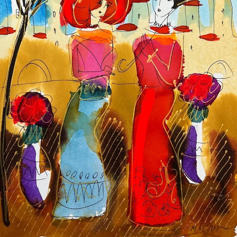 This is an original mixed media watercolor painting on paper by Moshe Leider. Hand signed by the artist, this piece comes custom framed and includes a Letter of Authenticity. Measures approximately 16" x 15" (frame), 9" x 8" (image). This item requires special handling and may have a longer than usual turnaround.