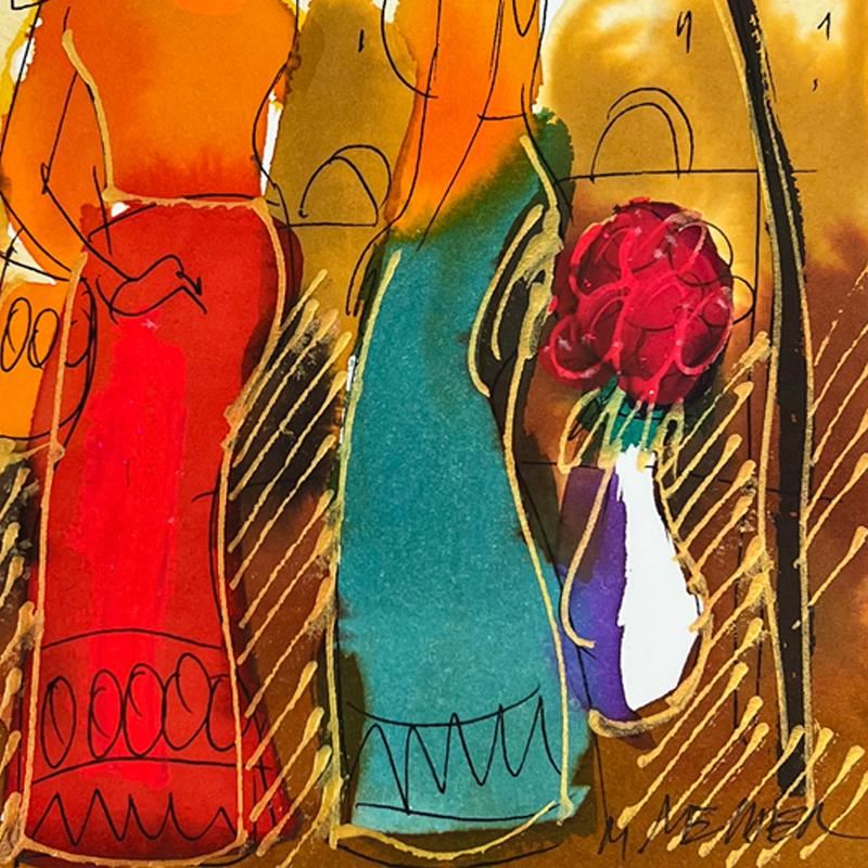 This is an original mixed media watercolor painting on paper by Moshe Leider. Hand signed by the artist, this piece comes custom framed and includes a Letter of Authenticity. Measures approximately 15" x 13.5" (frame), 8" x 6.5" (image). This item requires special handling and may have a longer than usual turnaround.