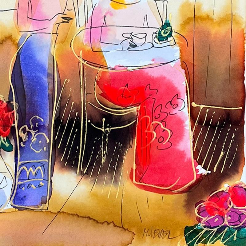 This is an original mixed media watercolor painting on paper by Moshe Leider. Hand signed by the artist, this piece comes custom framed and includes a Letter of Authenticity. Measures approximately 16" x 15" (frame), 9" x 8" (image). This item requires special handling and may have a longer than usual turnaround.