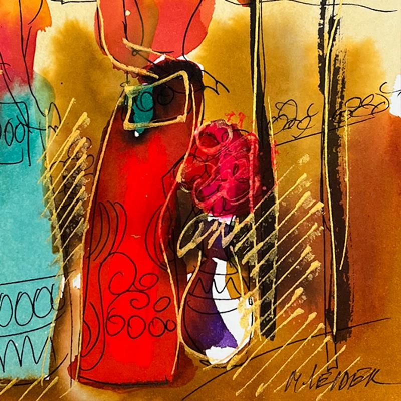 This is an original mixed media watercolor painting on paper by Moshe Leider. Hand signed by the artist, this piece comes custom framed and includes a Letter of Authenticity. Measures approximately 15" x 13.5" (frame), 8" x 6.5" (image). This item requires special handling and may have a longer than usual turnaround.